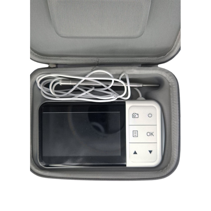 Este endoscópio-otoscópio portátil com câmera HD e tela LCD é uma ferramenta versátil para exames de ouvido, nariz e pele (dermatologia) em animais. Equipado com lente de 3,9 mm de diâmetro, resolução em 1080p e seis LEDs integrados, o aparelho permite inspeções detalhadas de canais auditivos ouais, cavidades nasais e lesões dermatológicas, oferecendo visualização nítida e em tempo real.
